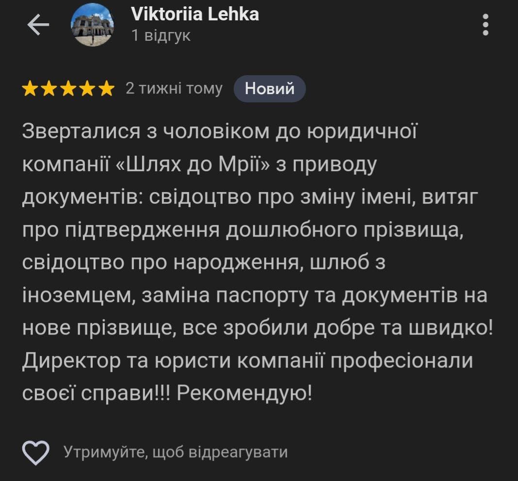 «Шлях до Мрії О.К.» — вага надійний партнер у сфері юридичних послуг. Ми спеціалізуємося на швидкому та якісному оформленні документів як для громадян України, так і для іноземців.